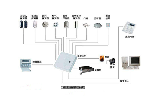 防盜報警系統(tǒng)由報警主機(jī)、紅外雙鑒探測器、聲光報警器等設(shè)備組成。